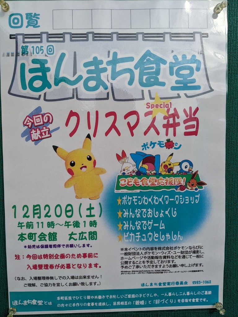 2025年12月21日第105回本町食堂に、長年愛されているピカチュウがやってきてくれました!