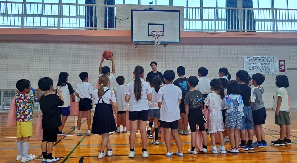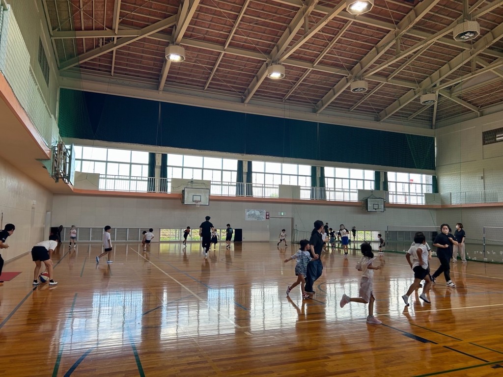 施設見学の後、みやき町内の体育館に移動して「ドリブル鬼ごっこ」などでこどもたちと一緒に汗をかきながら、楽しい時間を作っていただきました^^