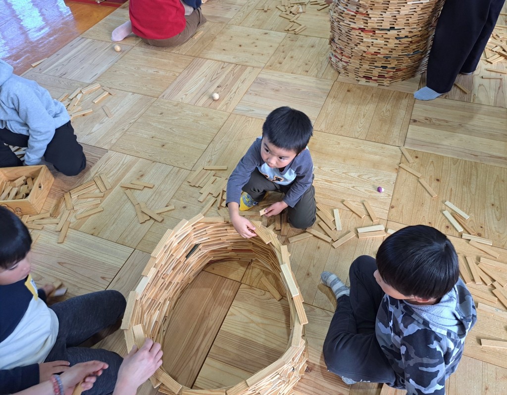 木のぬくもりを感じながらたくさん遊んで、美味しいカレーでおなかいっぱいになって、またしっかりあそぶ。こどもにとってはたまらない1日ですね。
