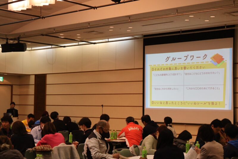 ミズウェルビーホール(佐賀市文化会館)にて佐賀市・地球市民の会・さが・こども未来応援プロジェクト実行委員会の三者での共催で、昨年の1回目を上回る、143人(居場所関係34人、こども40人※うち高校生30人、企業23人、行政14人、社協3人、中間支援16人、その他13人)に参加していただきました!