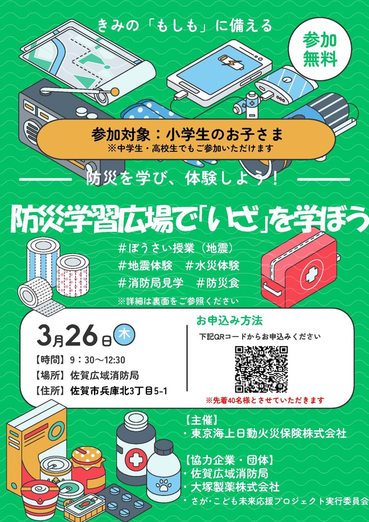 3月26日、佐賀広域消防局にて『防災学習広場で「いざ」を学ぼう』が開催されました。