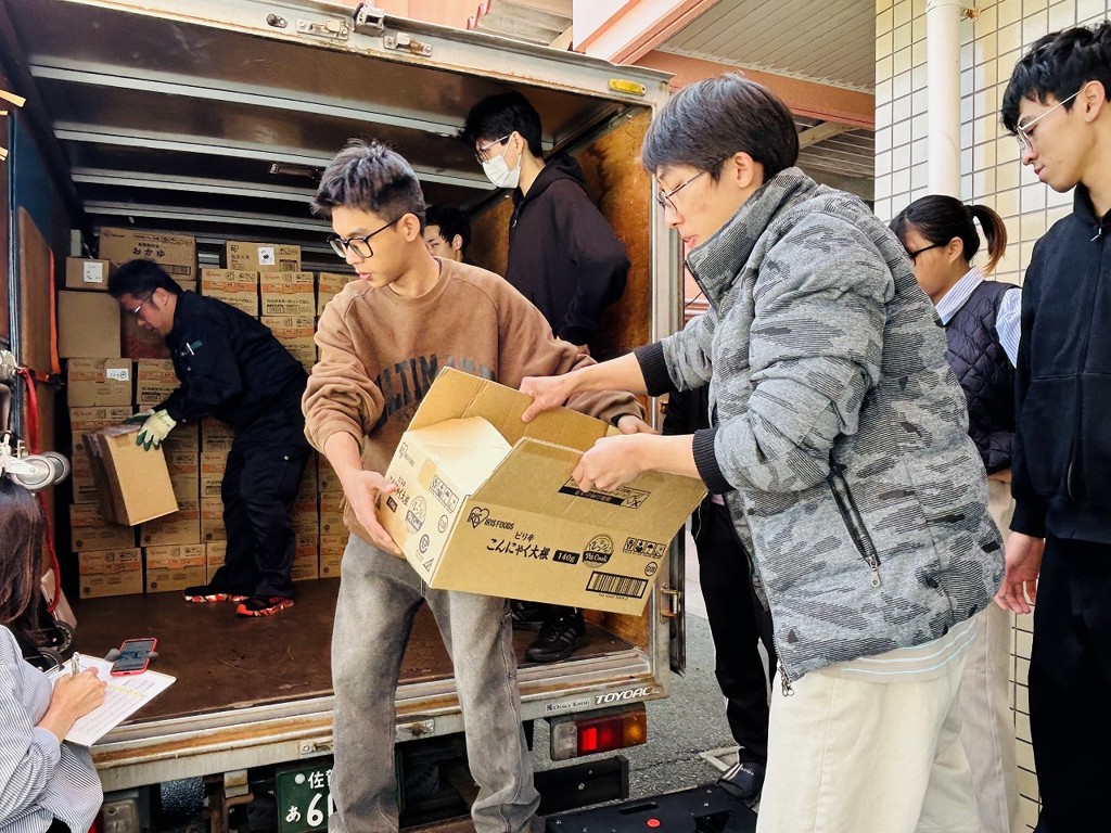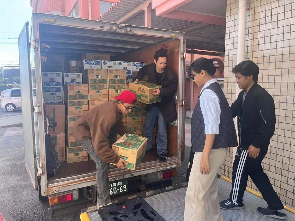 2月26日、アイリスオーヤマ様より食品のご寄付をいただきました。当日はドライバーの方や佐賀女子短期大学学生ボランティアの皆さんも一緒に搬入していただき、アイリスオーヤマ様のこども達を応援する思いをしっかり受け取りました。